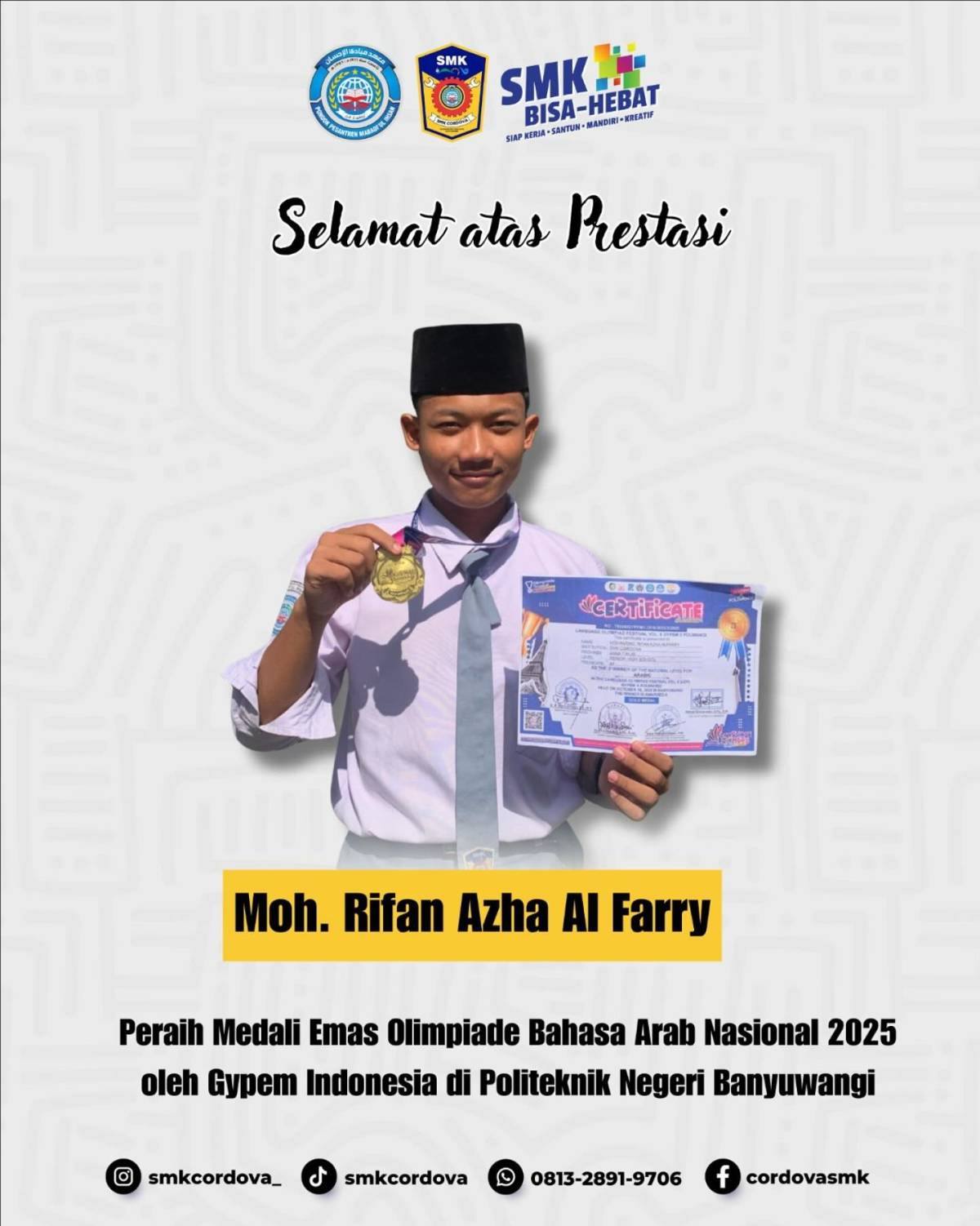 SMK Cordova berharap dari kegiatan ini dapat terjalin sinergi yang berkelanjutan dengan Yuk Experience sehingga lulusan SMK Cordova pada Program Keahlian Usaha Layanan Wisata mampu memenuhi tuntutan dunia kerja serta berkontribusi dalam perkembangan sektor wisata.